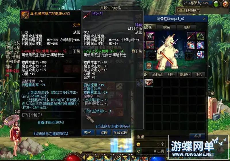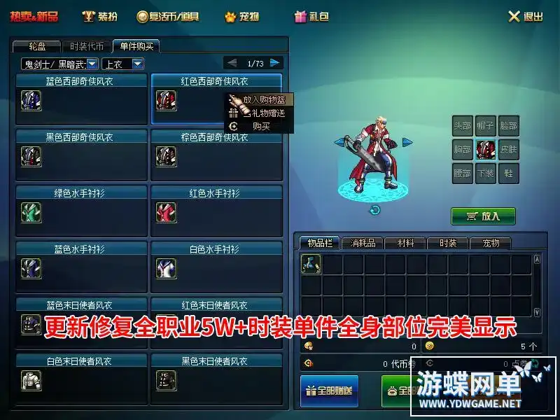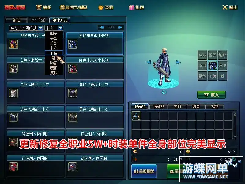 游蝶DOF单机仿官黑金第三版5W+时装单件影舞者忍者技能五合一完美版