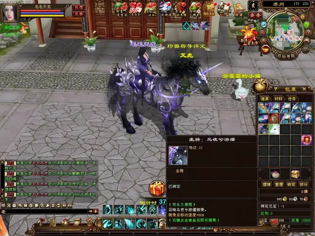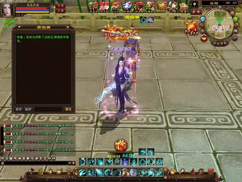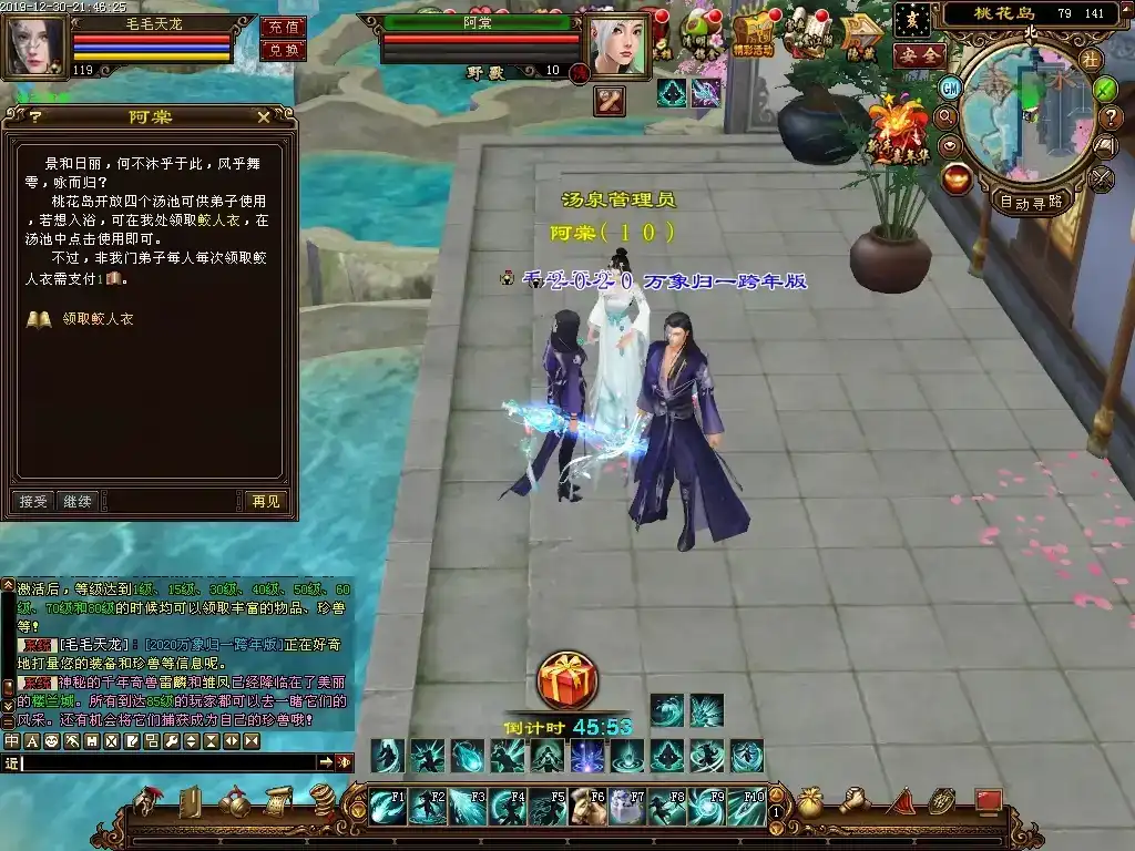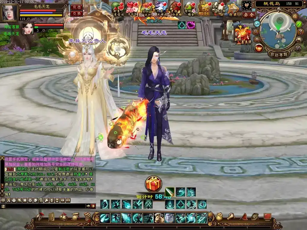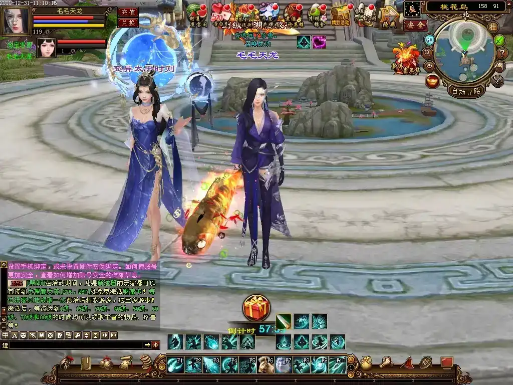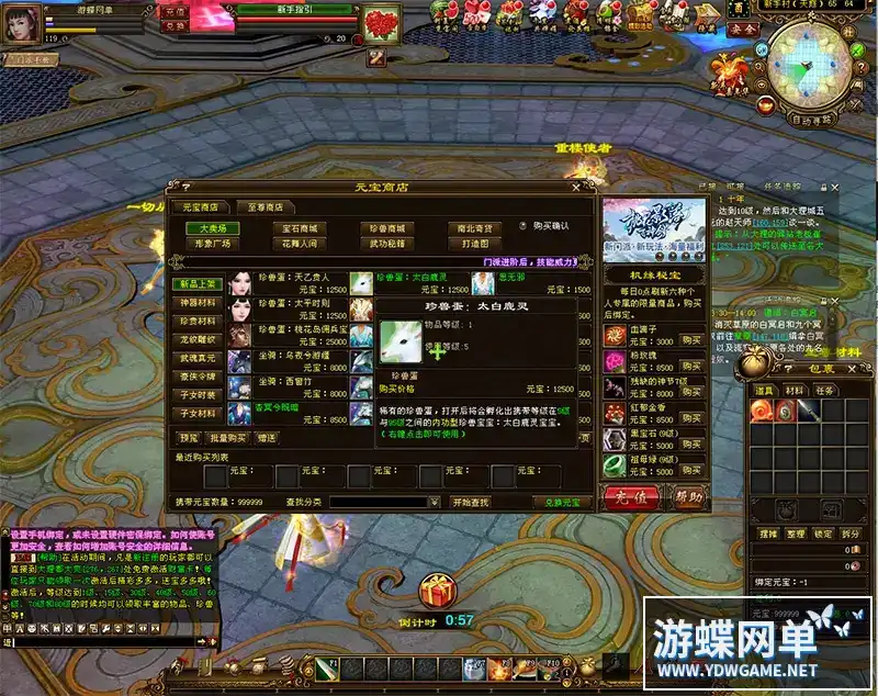 更新10:游戏初期在线时间兑换奖品,把一小时兑换一次改成了30分钟兑换一次,第二次兑换会赠送一个美女宠物,属性不错。