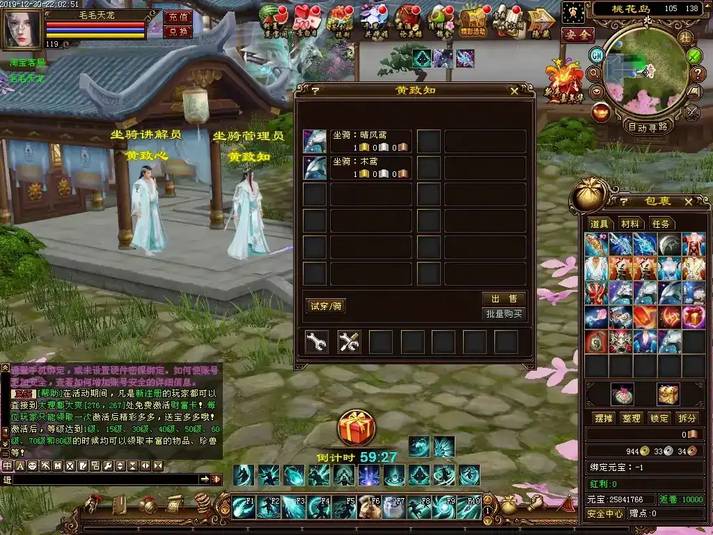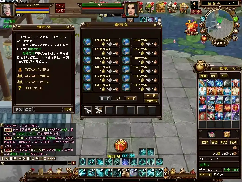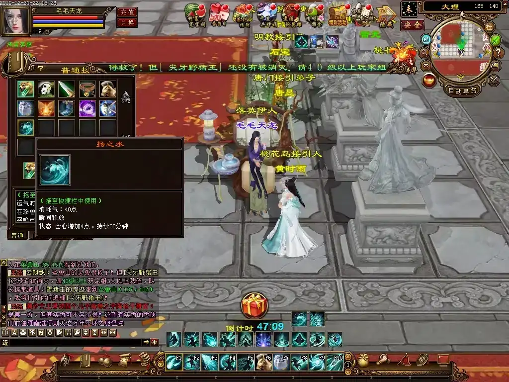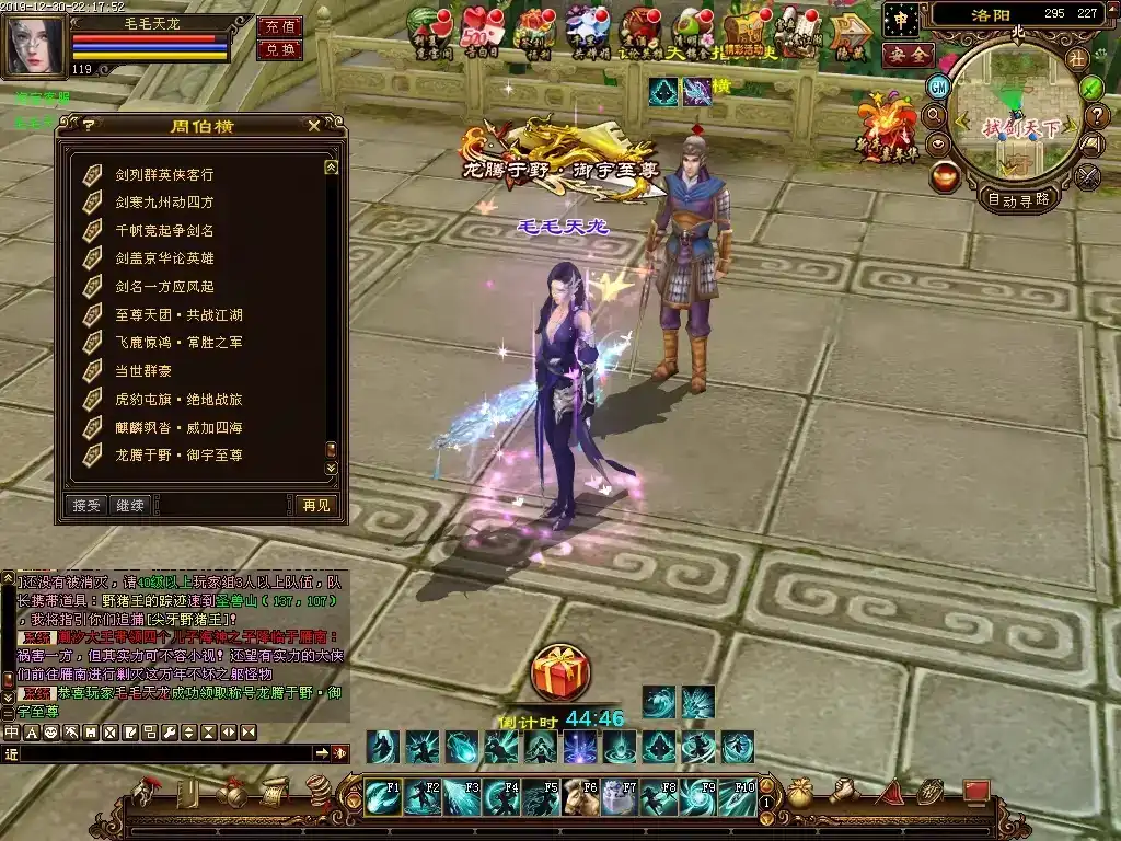 更新3∶修复大理李工部发布的几个新手任务,就是剑阁和无量山的首领怪掉的材料,可以去兑换装备,虽然属性很低,但是名副其实的新手装备,比较实用;