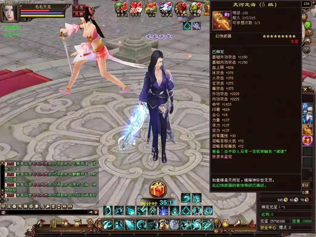 更新6:引入原完美版天龙里的部分装备设定,做任务和杀怪都有可能得到高星级的极品装备,不管是未鉴定的还是无需鉴定的,都有概率。另外原端里任务得到的装备属性有点乱,跟介绍的不一致,这里也做了修复;