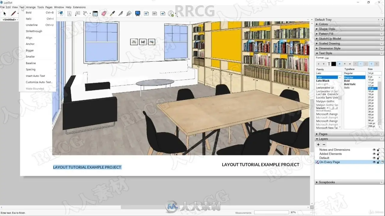 Learn how to export to LayOut to create a presentation document with dimensions and notes.