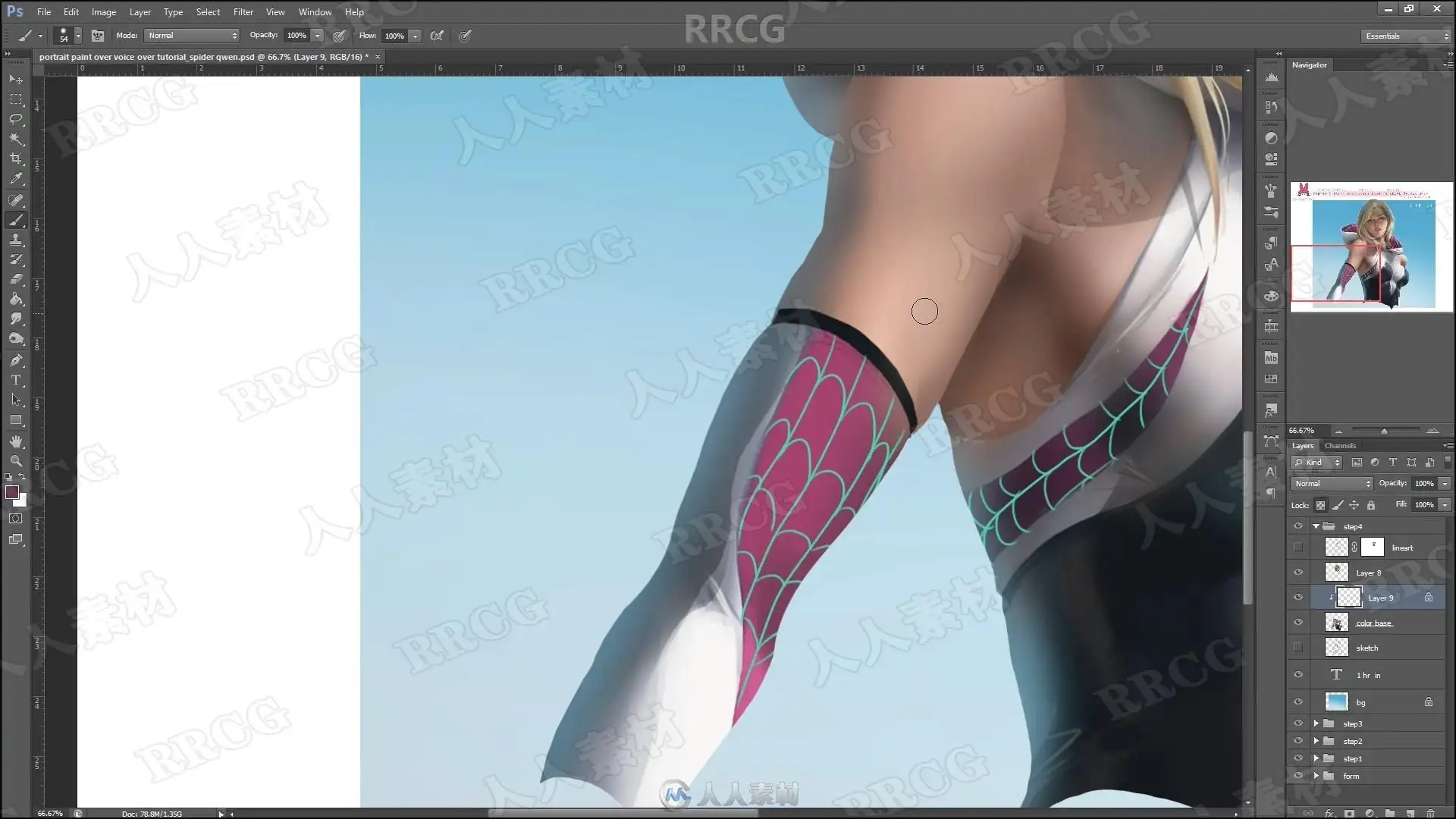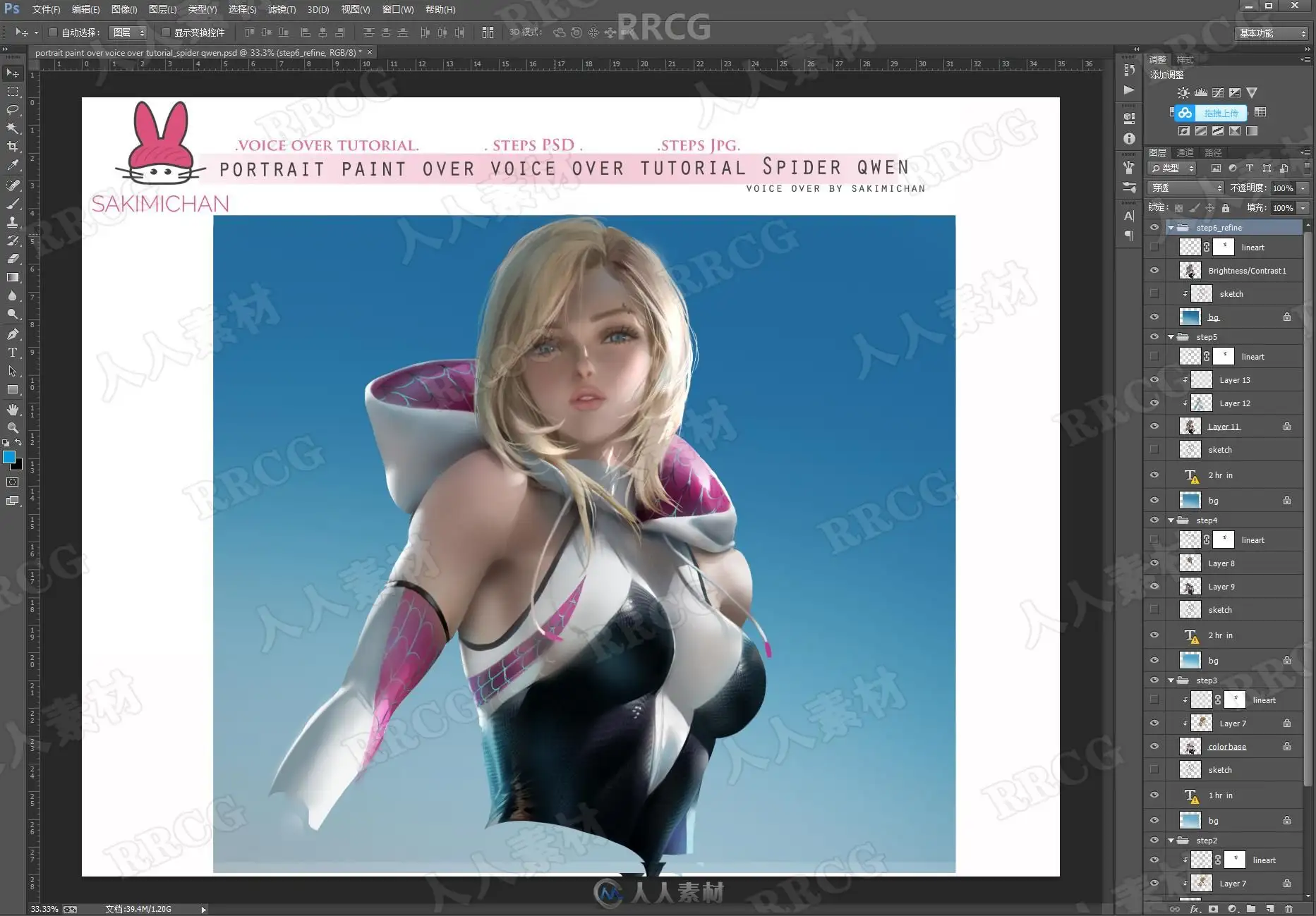 本教程是唯美女蜘蛛侠数字绘画实例训练视频教程,时长:2小时34分,大小:650 MB,MP4高清格式,附源文件,使用软件:Photoshop,作者:sakimi chan,共1个章节,语言:英文。