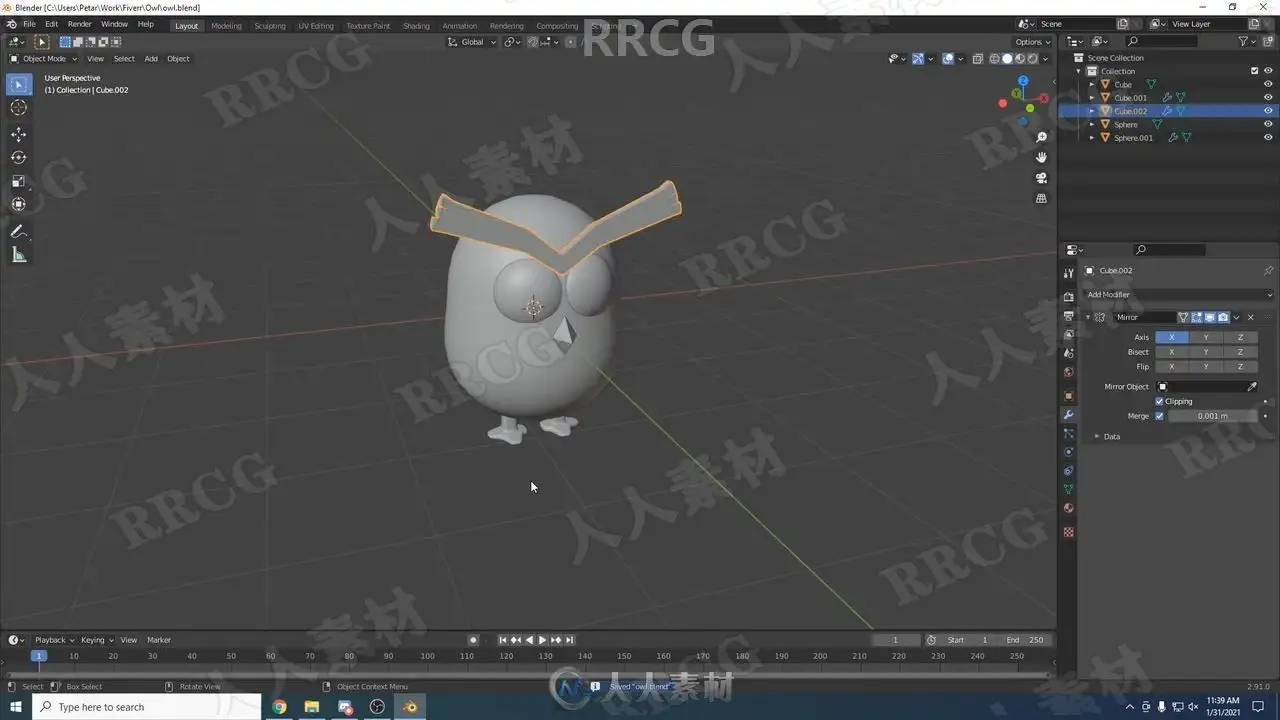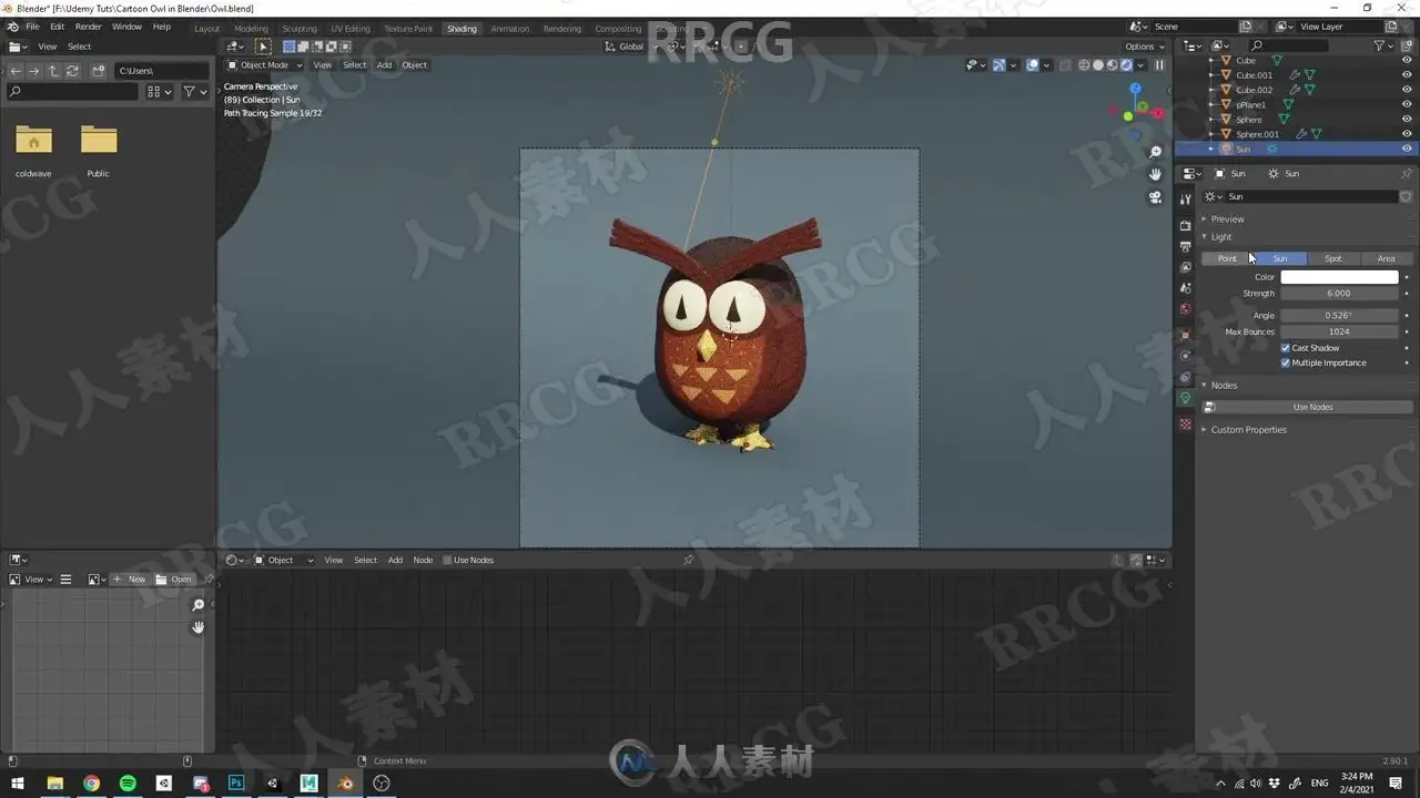 用Blender创建一个可爱的卡通猫头鹰,只需一个小时。