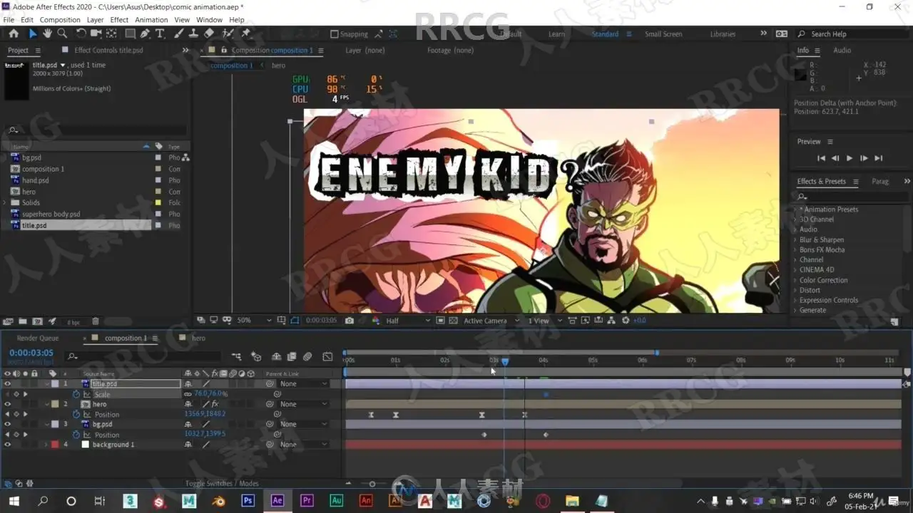 本教程是关于AE漫画书动画化实例制作视频教程,时长:53分,大小:650 MB,MP4高清视频格式,教程使用软件:After Effects,附源文件,作者:The Apps Firm,共5个章节,语言:英语