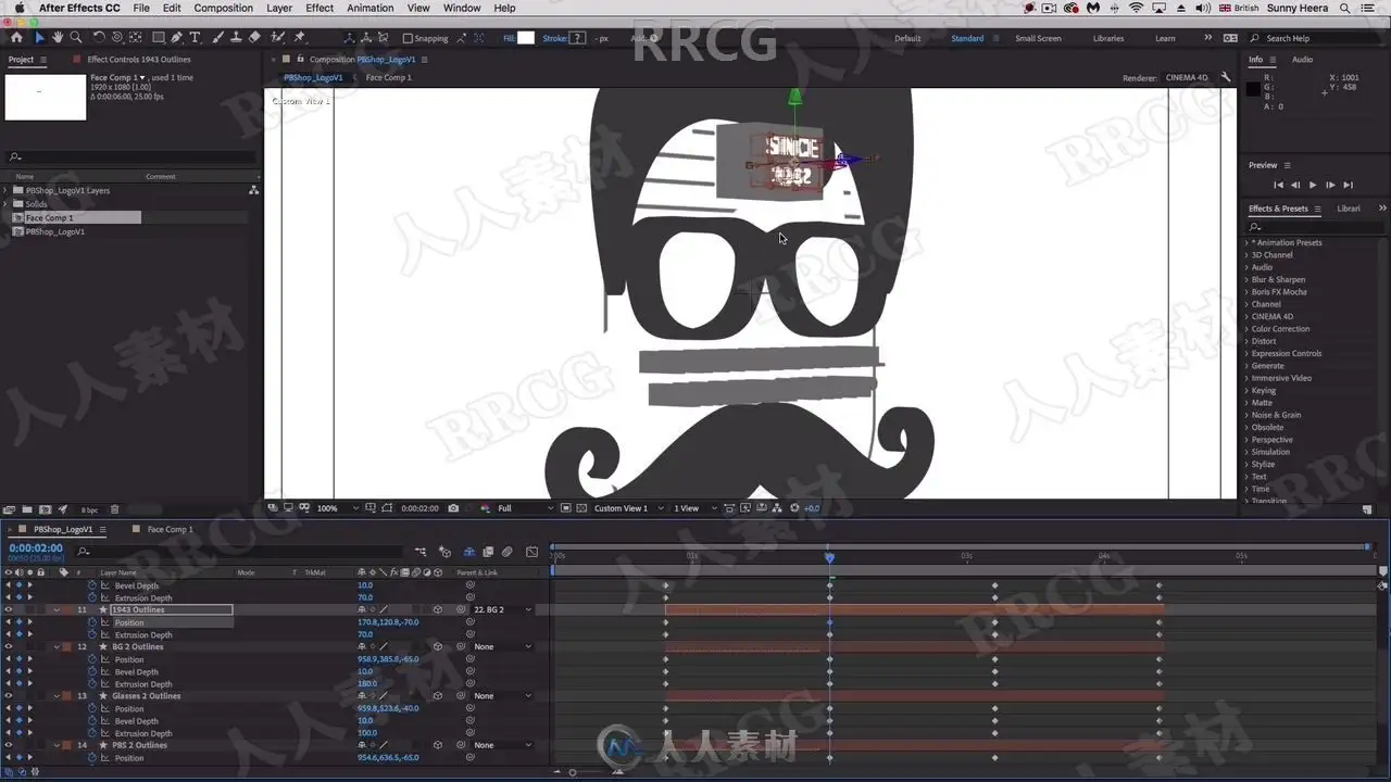 本教程是关于AE平面Logo标志3D动画特效制作视频教程,时长:1小时41分,大小:1.2 GB,MP4高清视频格式,教程使用软件:After Effects,附源文件,作者:Sunny Heera,共12个章节,语言:英语。